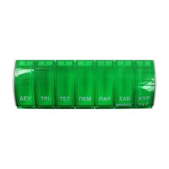 Εβδομαδιαία θήκη χαπιών με 7 θέσεις, μία για κάθε ημέρα, σε πρακτικό μέγεθος και εύκολη στη χρήση. Οργανώνει τα καθημερινά σας χάπια ώστε να μην ξεχνάτε να τα λαμβάνετε, ενώ παράλληλα επιτρέπει να τα μεταφέρετε εύκολα μαζί σας.