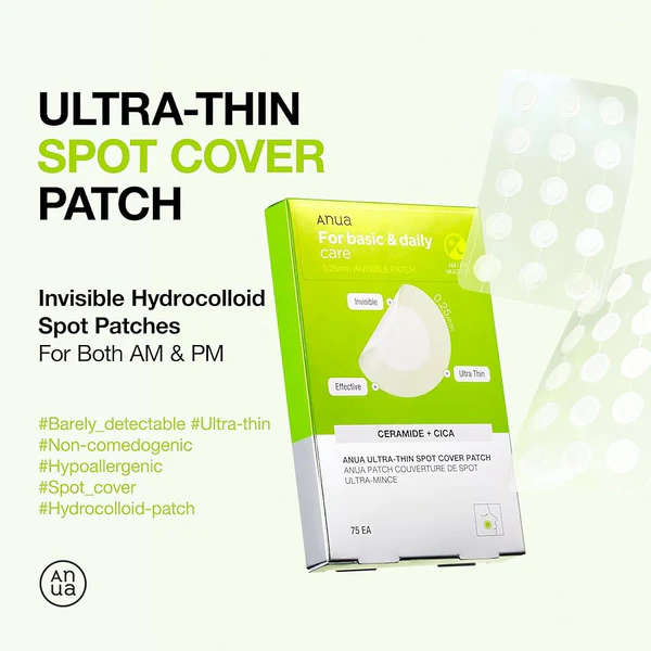 Απορρόφησε τις ατέλειες και προστάτεψε την επιδερμίδα σου με τα Anua Ultra Thin Spot Cover Patch, τα υπερλεπτά επιθέματα υδροκολλοειδούς (0,25 mm) που προσφέρουν φυσική, ματ κάλυψη των σπυριών, ενώ παράλληλα βοηθούν στην επούλωση. Διαθέσιμα σε δύο μεγέθη (10mm & 15mm), εφαρμόζουν τέλεια στο δέρμα χωρίς να ξεκολλούν — ιδανικά για χρήση τόσο την ημέρα όσο και τη νύχτα, ακόμη και κάτω από το μακιγιάζ.