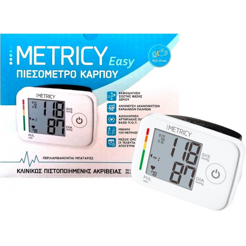 Το ψηφιακό πιεσόμετρο καρπού BPM29 Metricy “Easy” της Biopharm παρέχει αξιόπιστες µετρήσεις στην ανίχνευση των ακανόνιστων καρδιακών παλµών αλλά και ευκολία στη χρήση.
