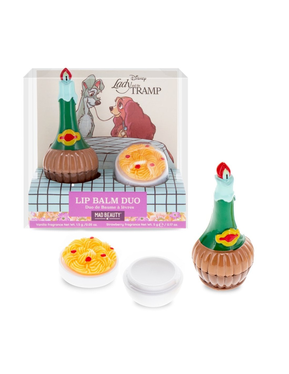 Εμπνευσμένο από την πιο εμβληματική σκηνή της πολύ αγαπημένης μας ταινίας Η Λαίδη και ο Αλήτης, αυτό το αχτύπητο δίδυμο lip balm για τα χείλη είναι τόσο ευχάριστο να το βλέπεις όσο και να το χρησιμοποιείς! Αρωματισμένα με φρέσκια και φρουτώδη φράουλα και ζεστή βανίλια, τα χείλη θα μείνουν απαλά και ενυδατωμένα.