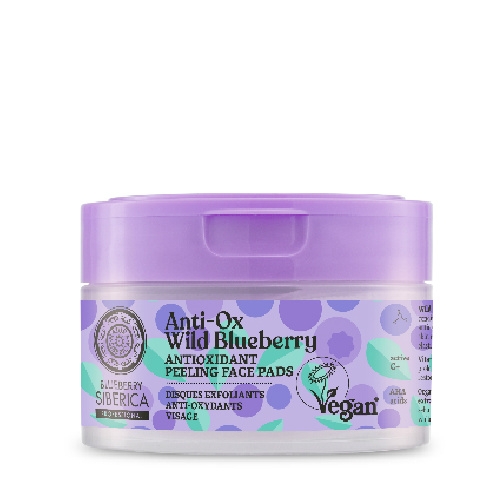 Αυτοί οι αντιοξειδωτικοί δίσκοι peeling προσώπου σταματάνε τις ελεύθερες ρίζες, διεγείρουν την μεταβολική διαδικασία αφήνοντας την επιδερμίδα απαλή και λαμπερή. Τα άγρια ηφαιστιογενή blueberries , που αναπτύσσονται σε σκληρές συνθήκες στην Τάιγκα, περιέχουν τεράστια ποσότητα πολύτιμων αντιοξειδωτικών ανθοκυανινών . Τα blueberries είναι επίσης πλούσια σε βήτα καροτίνη και βιταμίνες Β, που προσθέτουν λάμψη, αφήνοντας το δέρμα ενυδατωμένο και απαλό.