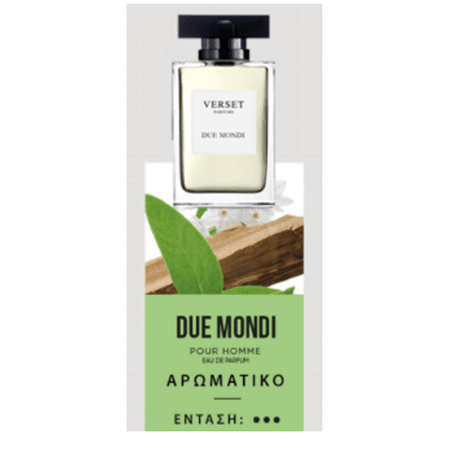 To Due Mondi είναι ένα φρέσκο βρυώδες άρωμα για έναν περιπετειώδη και αισιόδοξο άνδρα. Ο μοναδικός συνδυασμός από σάλβια, νάρκισσος και τριανταφυλλιά και πατσουλί δίνουν βάθος και αισθησιασμό σε αυτό το άρωμα.